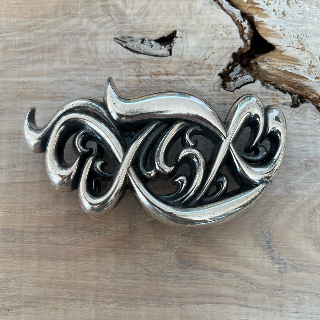 Wechselschnalle wunderschön geschwungen, silberfarben leicht geschwärzt 5,5x10cm, massiv Metall. Passend für Gürtel bis 4cm Breite