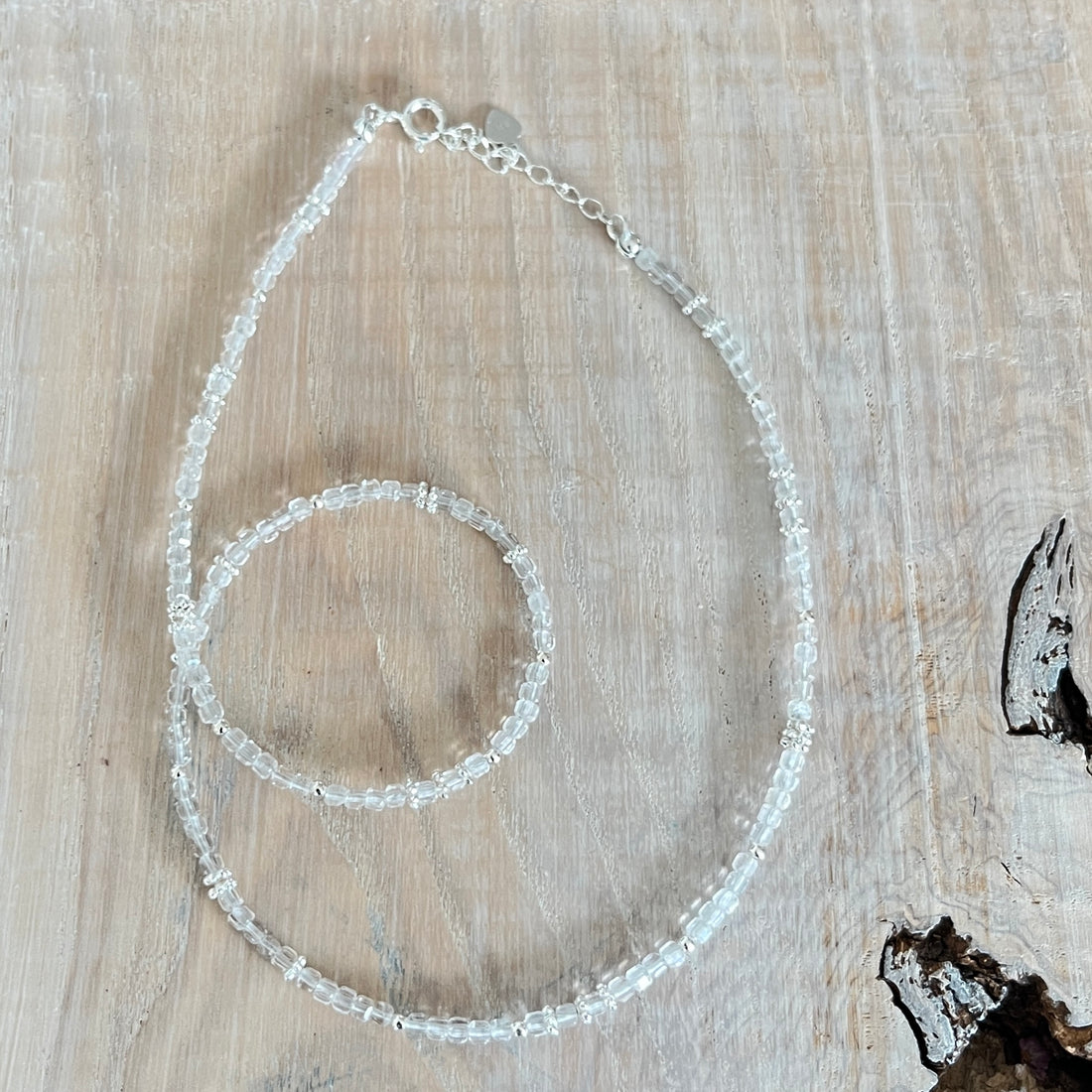 Traumhaft schöne 3mm Bergkristallkette und 925 Sterlingsilberteilchen. Kettenlänge 40cm mit Verlängerung 44cm. Ohne Anhänger