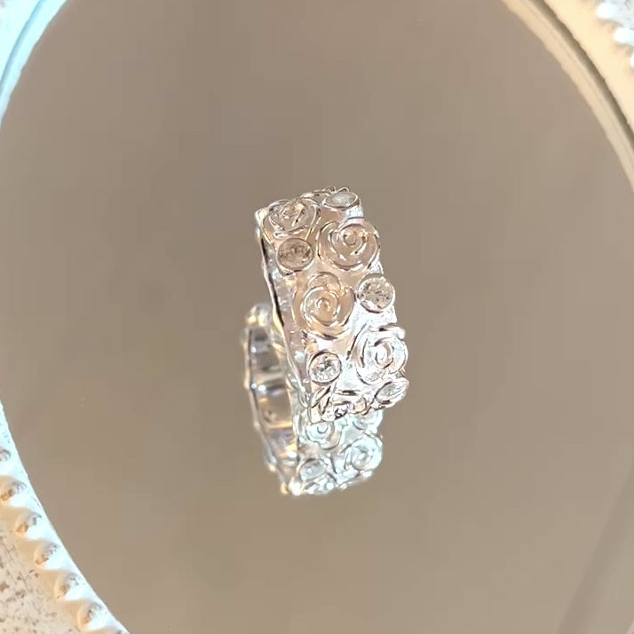 Ring 925 Sterlingsilber mit wunderschönen Rosen und vielen Zirkoniasteinen 10mm breit