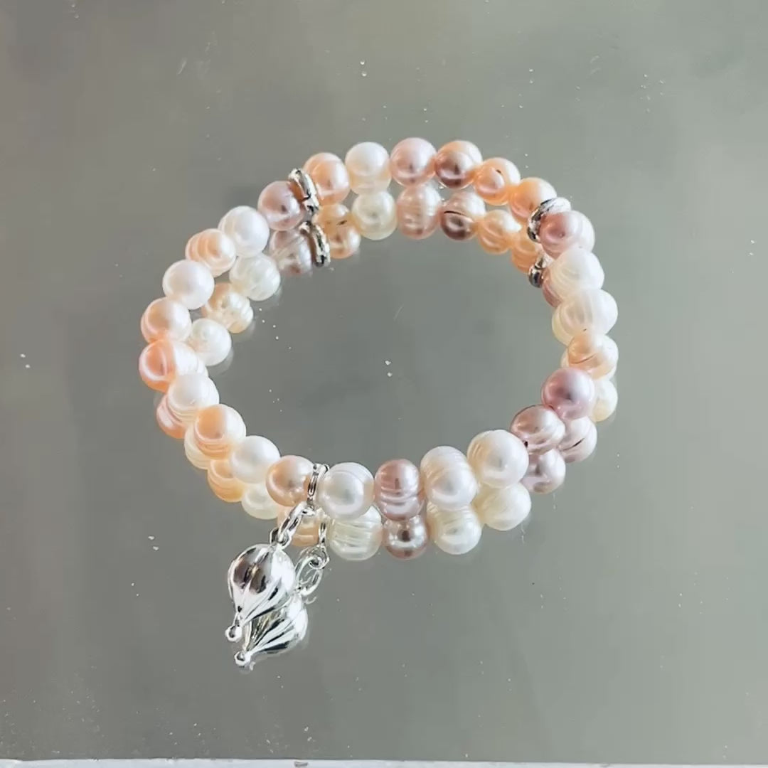 1 Armband Süsswasserperle 3 Farbig 8mm, 2 kleine 925 Silberteilchen, ein 925 Sterlingsilber Tropfen 2ox10mm.