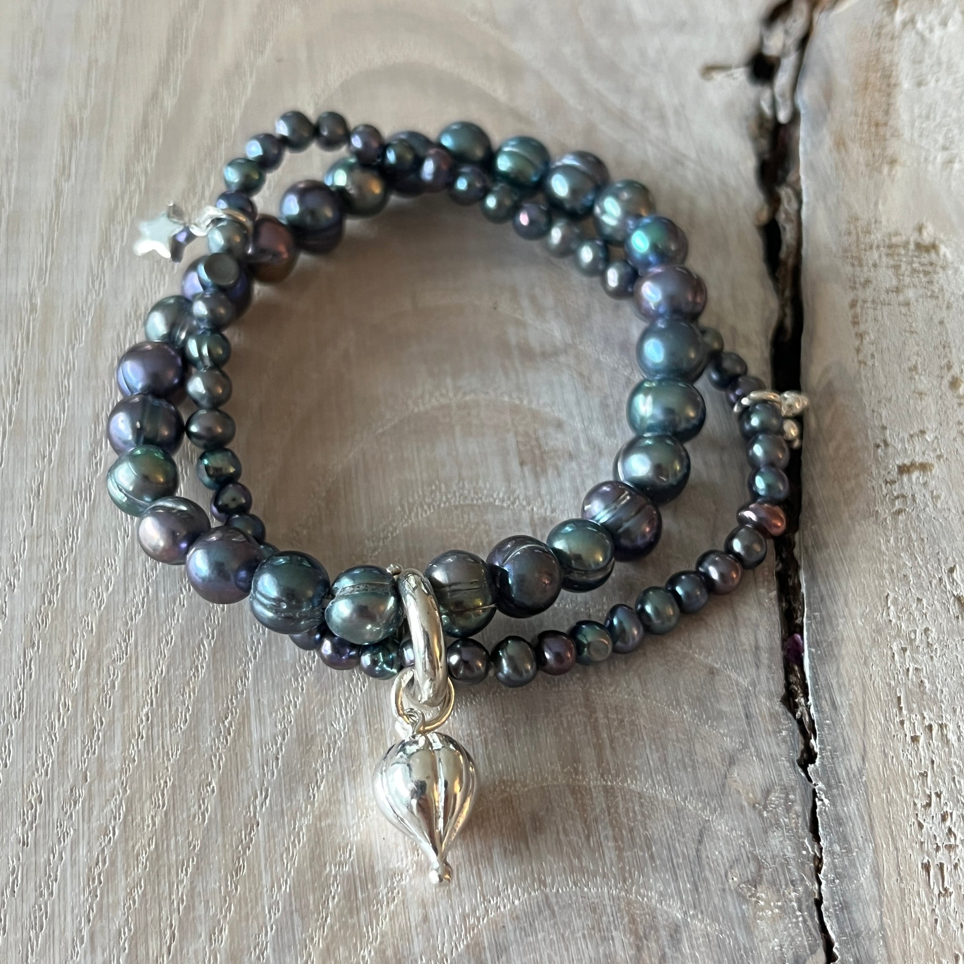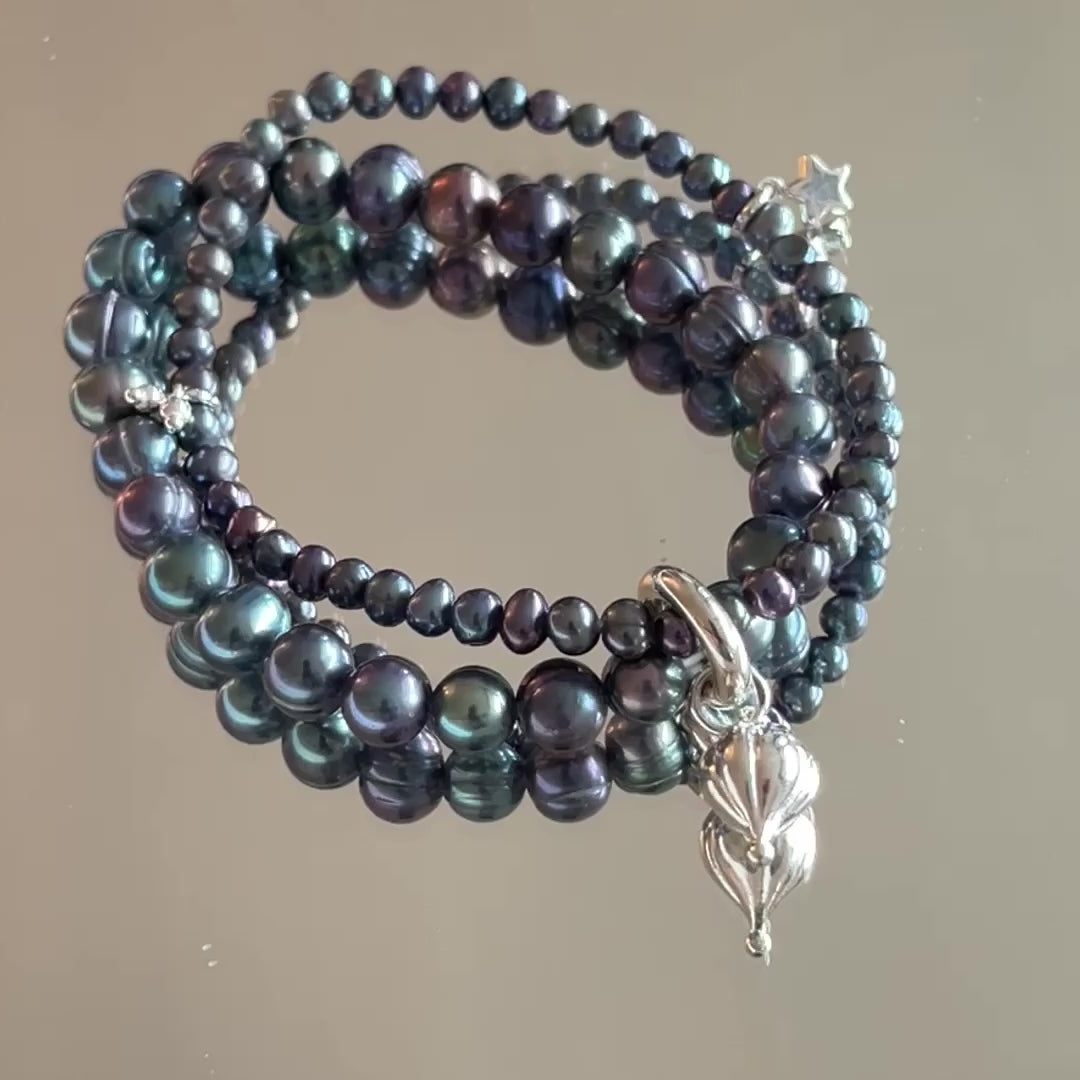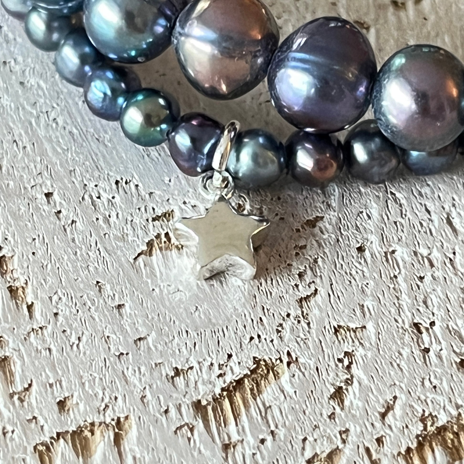 1 Süsswasserperle obergine 8mm, 1 Süsswasserperle dunkelgrau, der schöne Tropfen und das miniteilchen Stern sind 925 Sterlingsilber