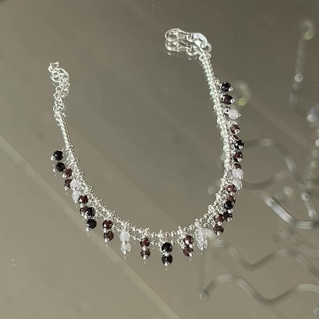 Armkette Kügelchen 925 Sterlingsilber mit vielen Anhängern Edelsteine in Erdtönen 17,5-19,5cm verstellbar