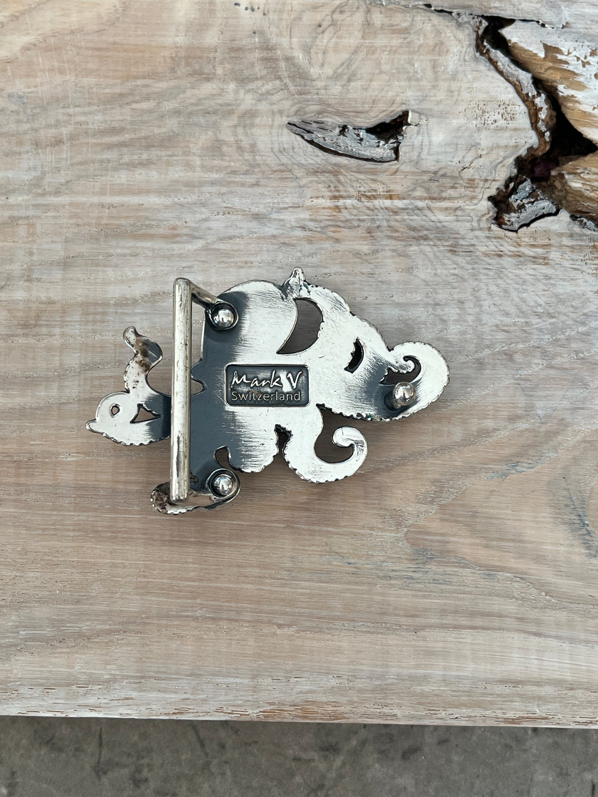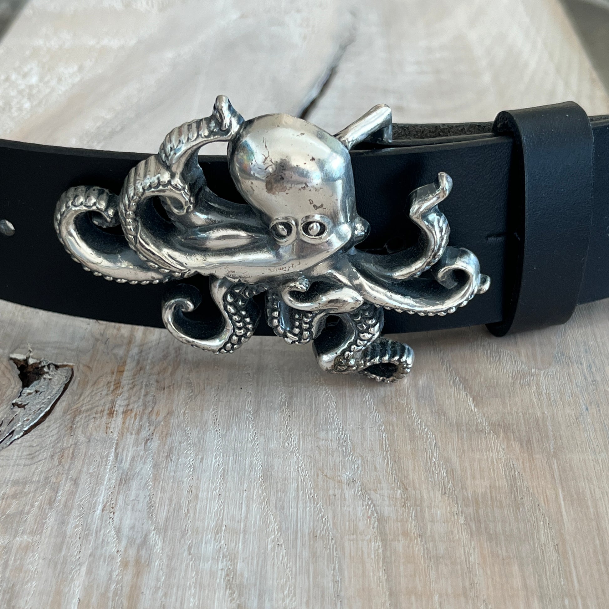 Wechselschnalle hübscher Tintenfisch silberfarben/geschwärzt 5x7,5cm, massiv Metall. Passend für Gürtel bis 4cm Breite