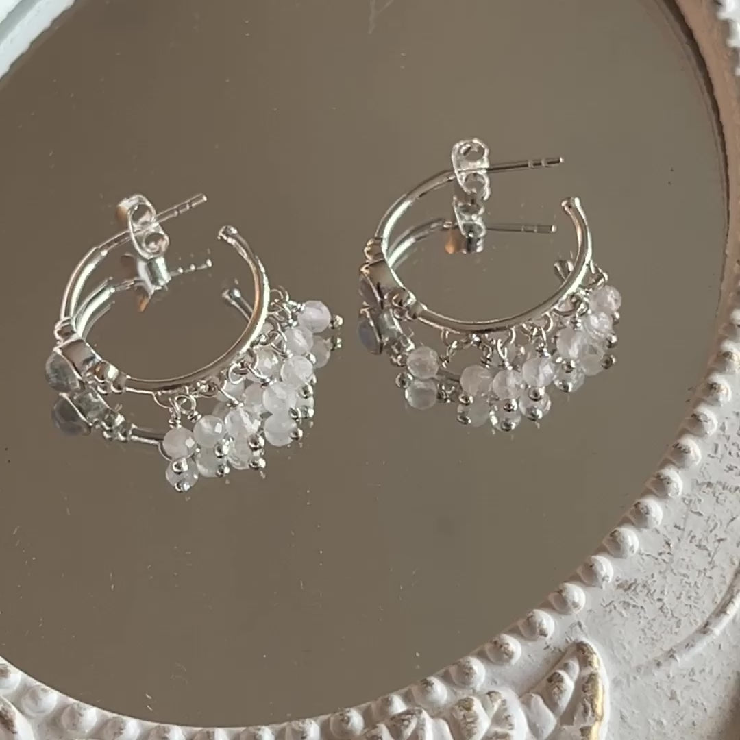 Creolen Ohrstecker 925 Sterlingsilber mit facettiertem Regenbogen Mondstein 10mm