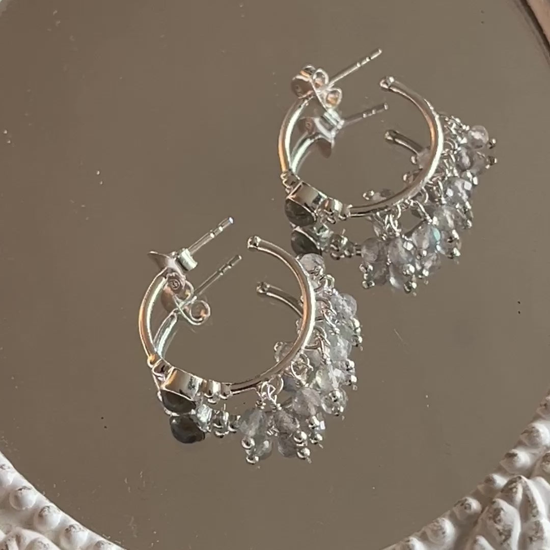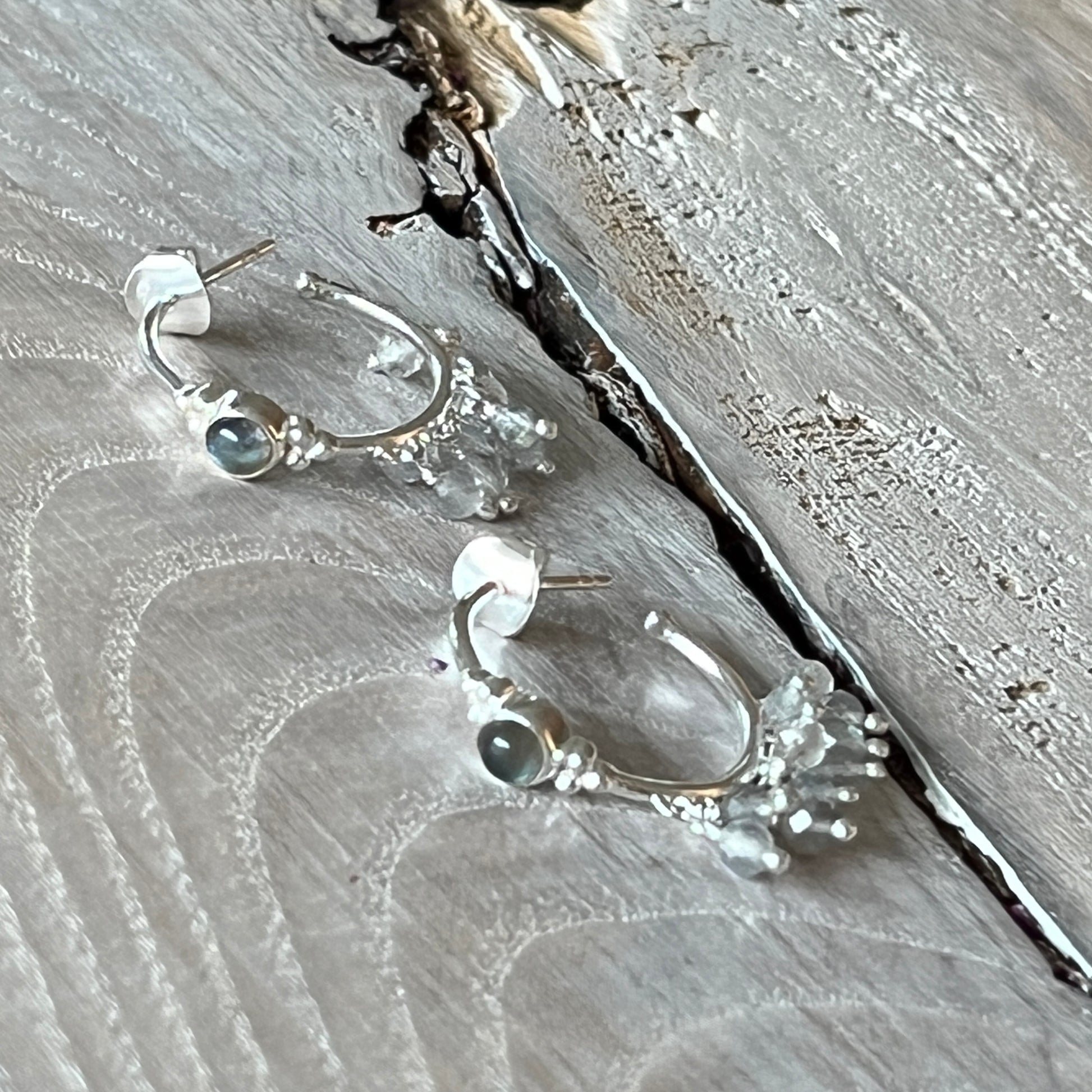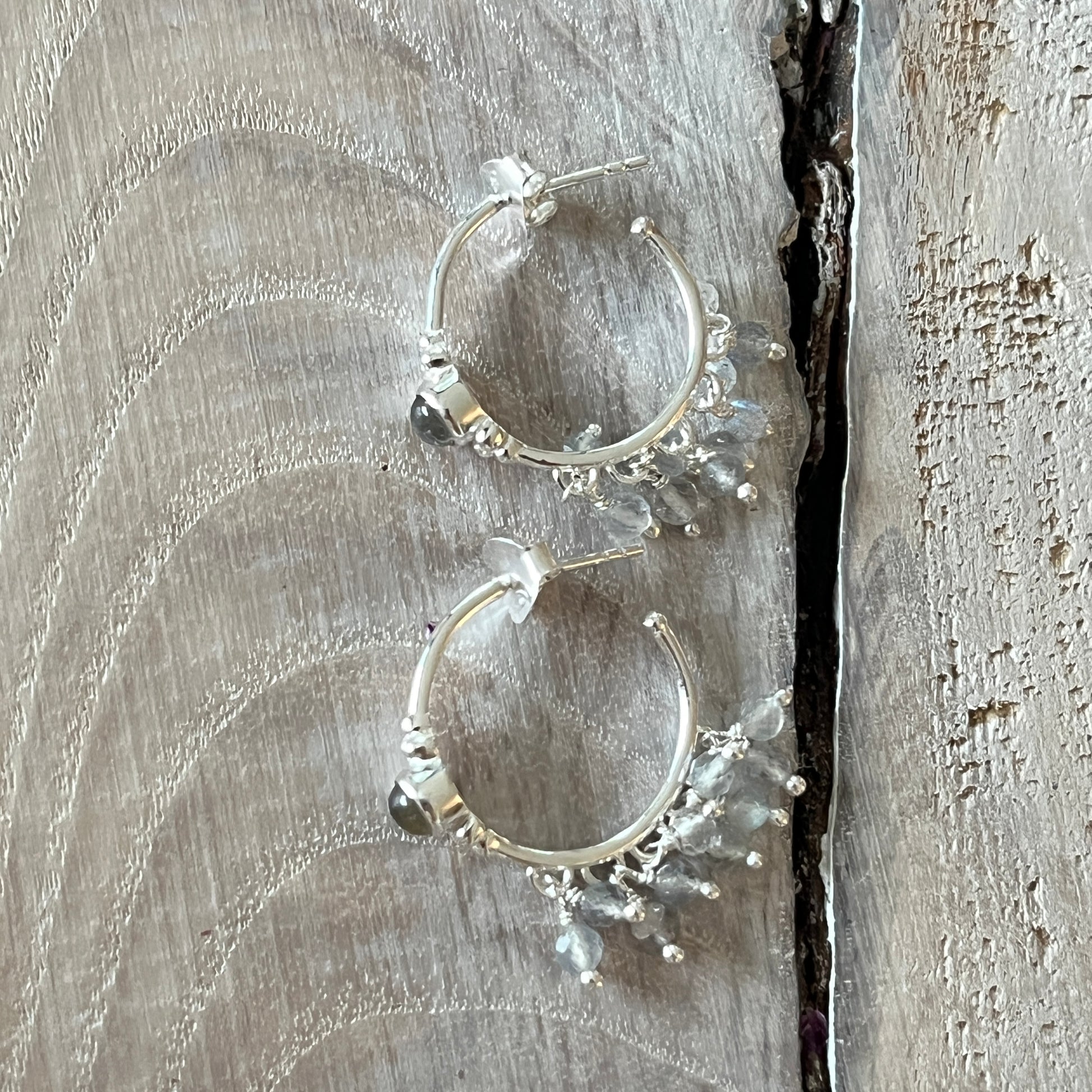 Creolen Ohrstecker 925 Sterlingsilber mit facettiertemLabradorit 10mm