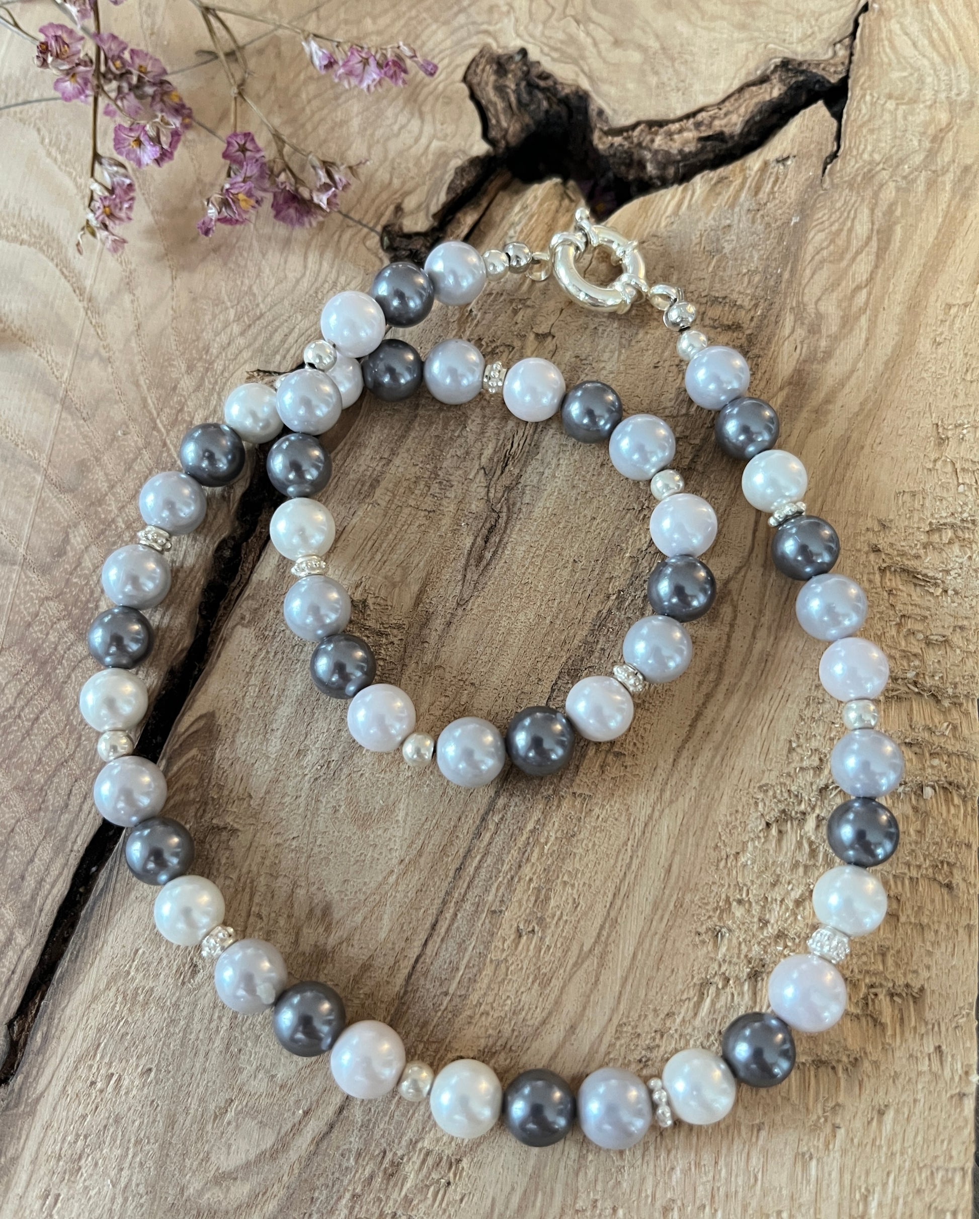 "Verleihen Sie Ihrem Outfit mit dieser individualisierten Süsswasserperlen-Kette eine einzigartige Note! Hergestellt aus echten Perlen in drei verschiedenen Farben und 925 Sterlingsilberteilen sorgt sie für einen subtilen Glamour. Perfekt für jeden Tag oder für besondere Anlässe. (Inkl. 48,5 cm Kette). "