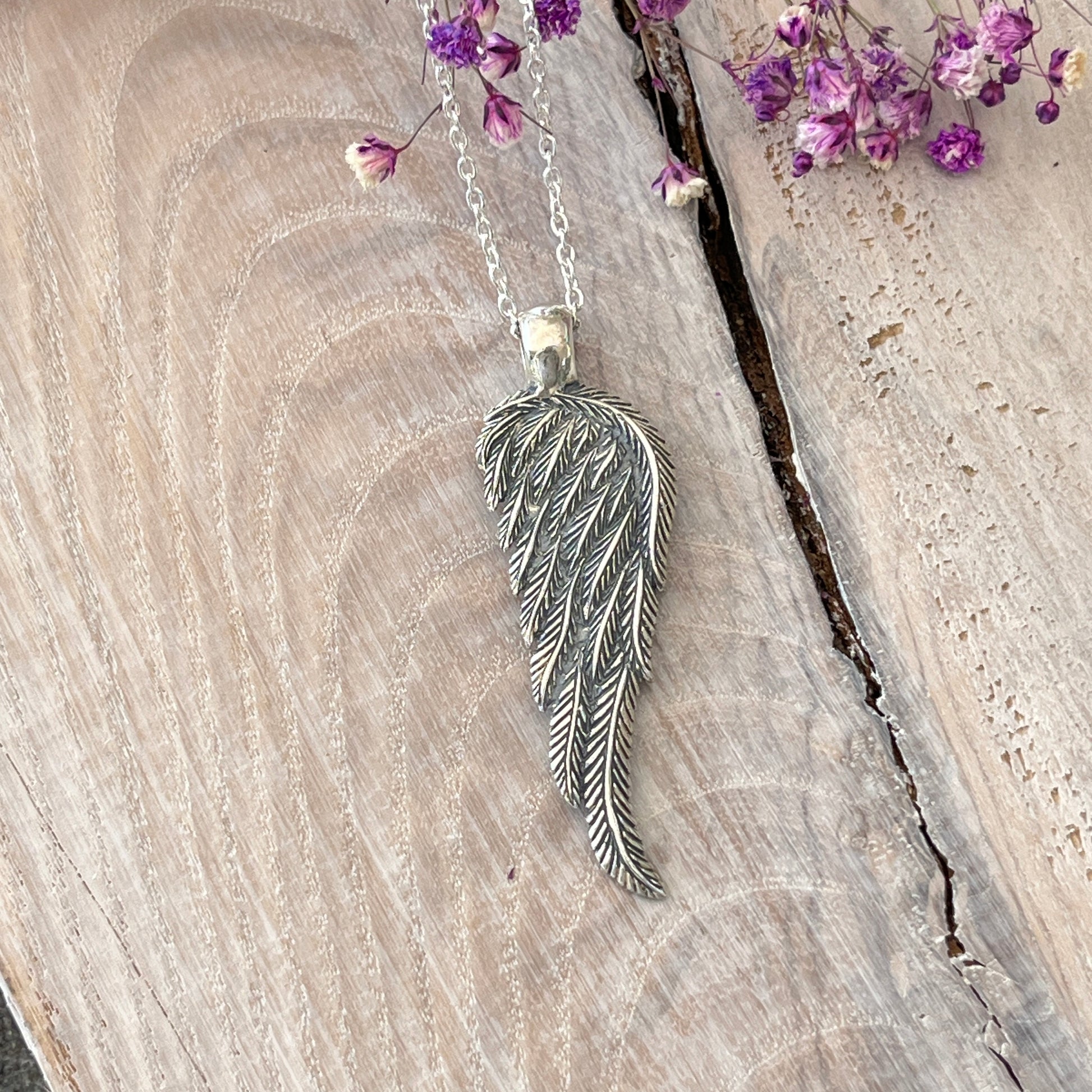 Zauberhafter Engelsflügel-Anhänger, handgefertigt aus massivem 925 Sterlingsilber und erhältlich in zwei Größen. Verleiht jedem Outfit einen himmlischen Touch. Perfekt als Geschenk für einen besonderen Menschen. (Kette nicht inklusive)AH 109