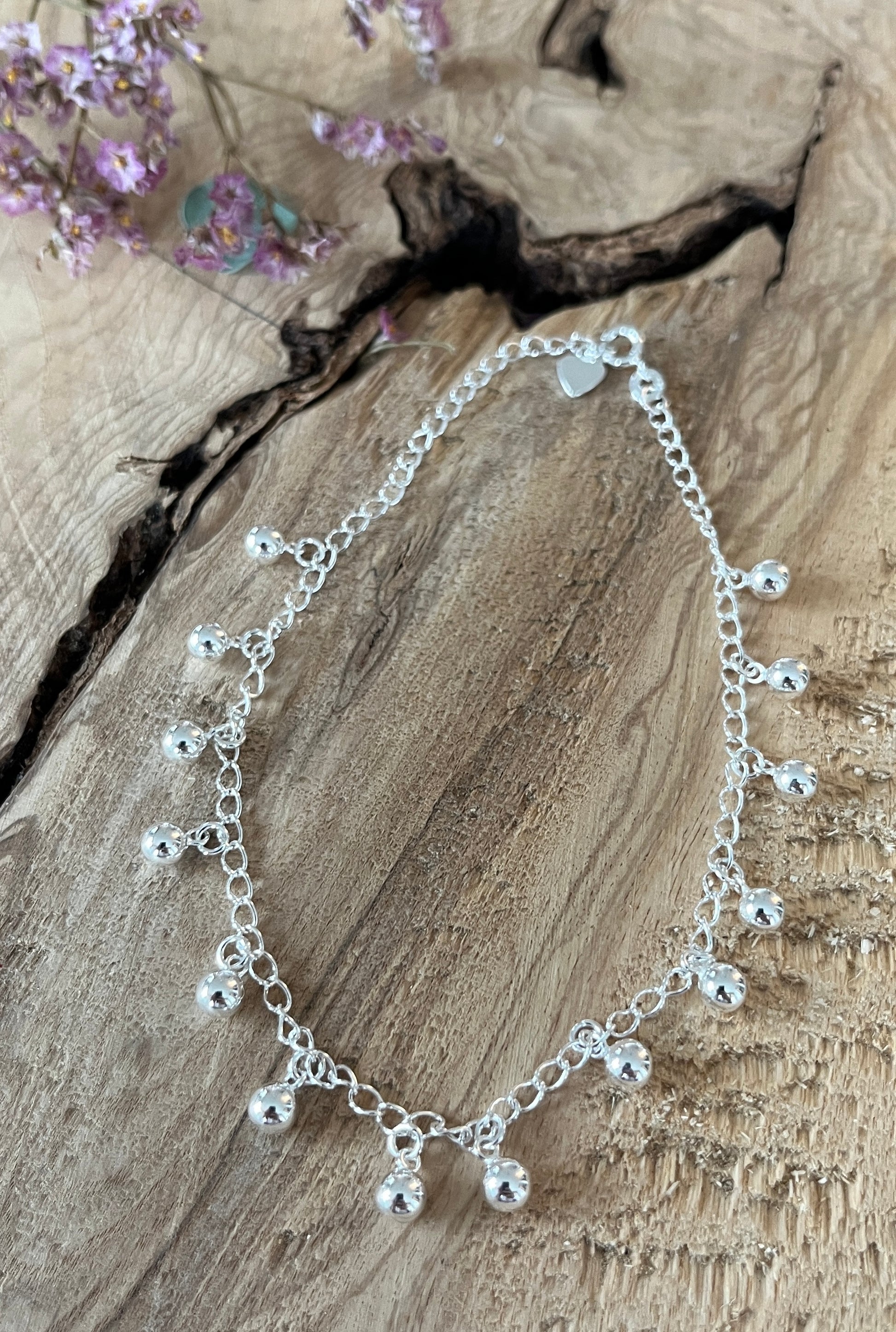 Fusskettchen 925 Sterlingsilber mit hängenden grössere Kügelchen