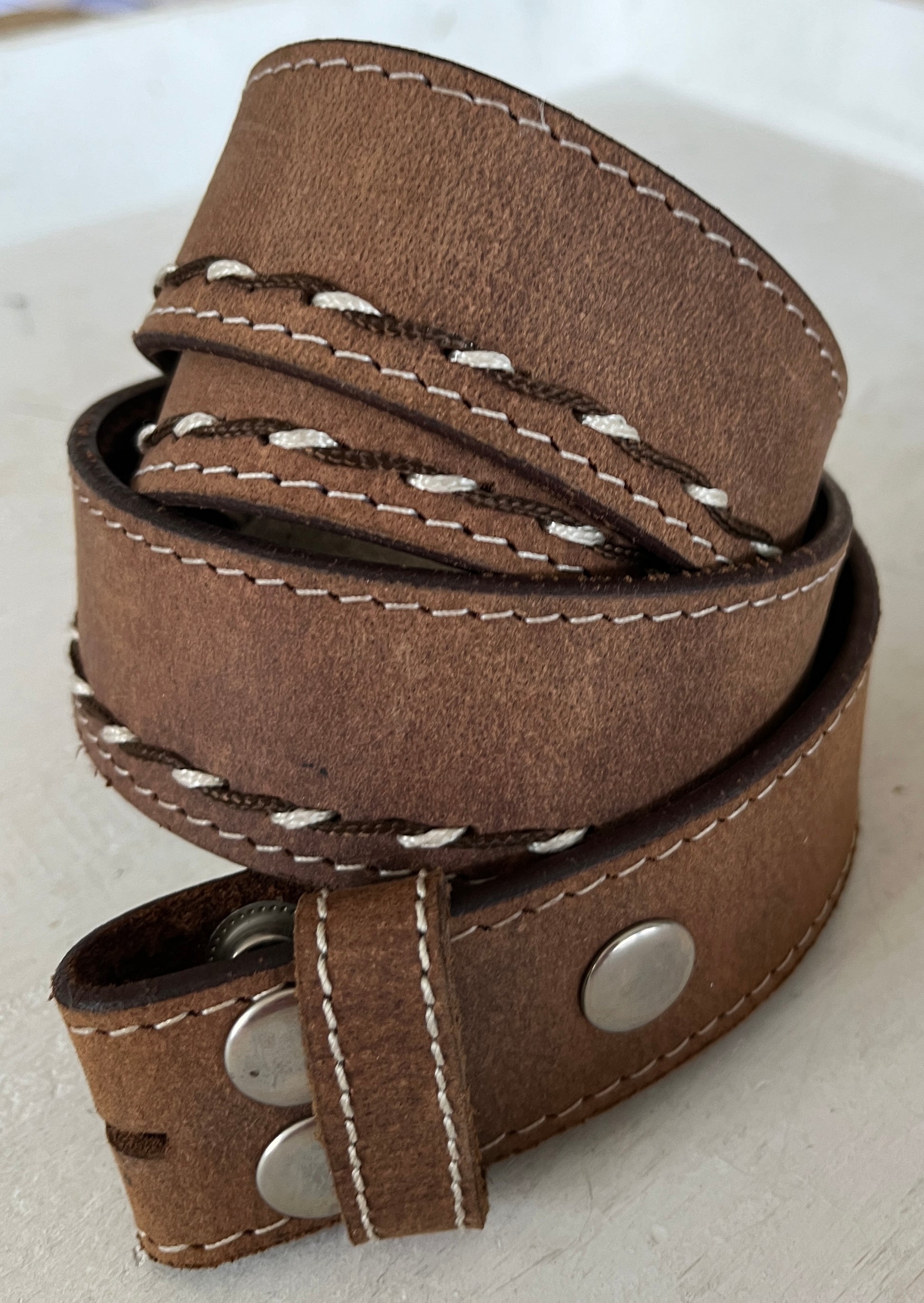 Ledergürtel 38mm Braun mit weiss/braunen Nähten