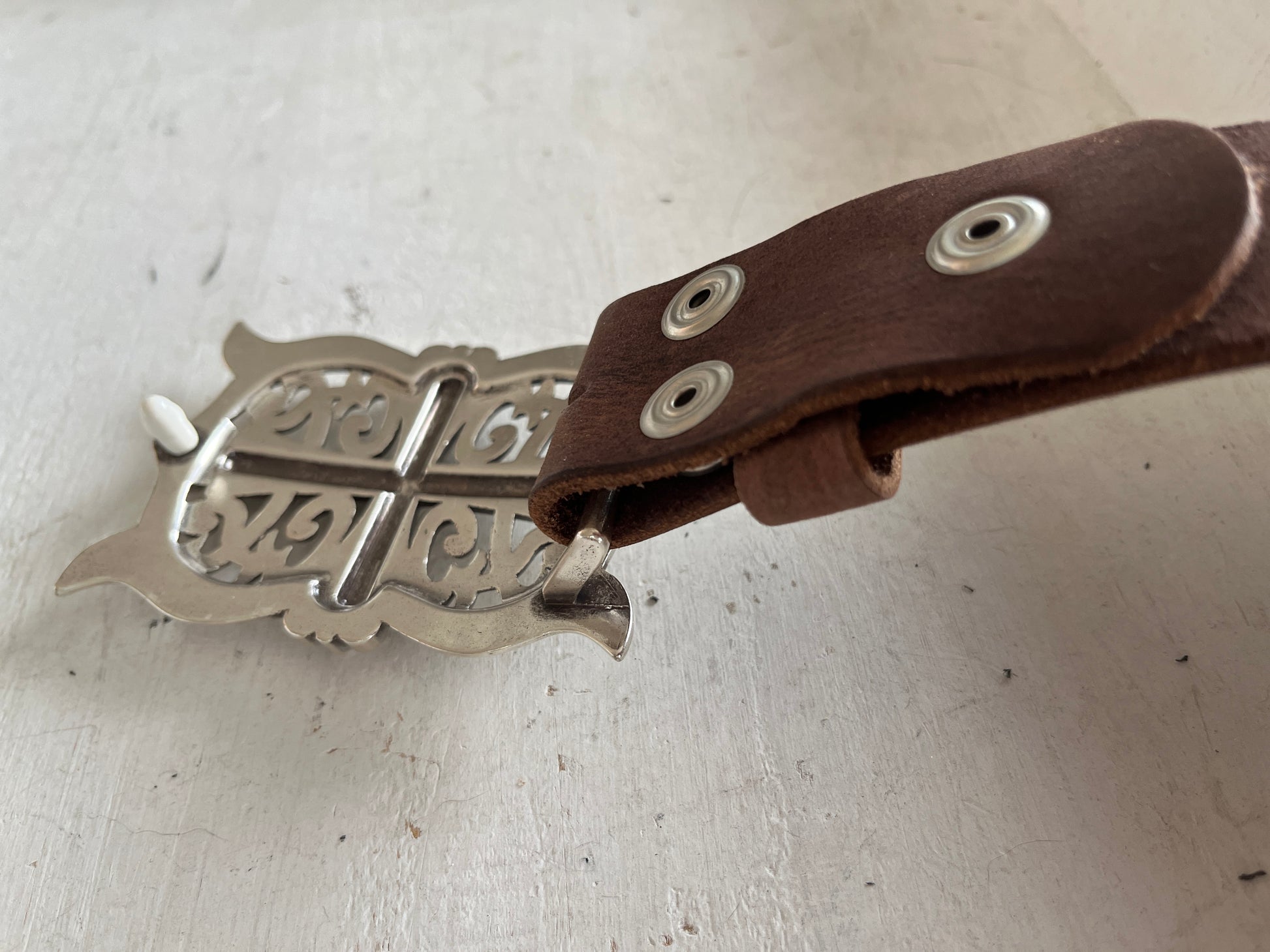 "Ledergürtel mit Charakter: Dieser 38mm breite Gürtel aus robustem Rindsleder ist nicht nur langlebig, sondern auch individuell anpassbar. Mit Druckknöpfen können Sie die Gurtschnalle nach Lust und Laune wechseln. Das braune Leder mit weiß7braunen Nähten sorgt für einen einzigartigen Look. Für Schnallen bis 40mm geeignet."