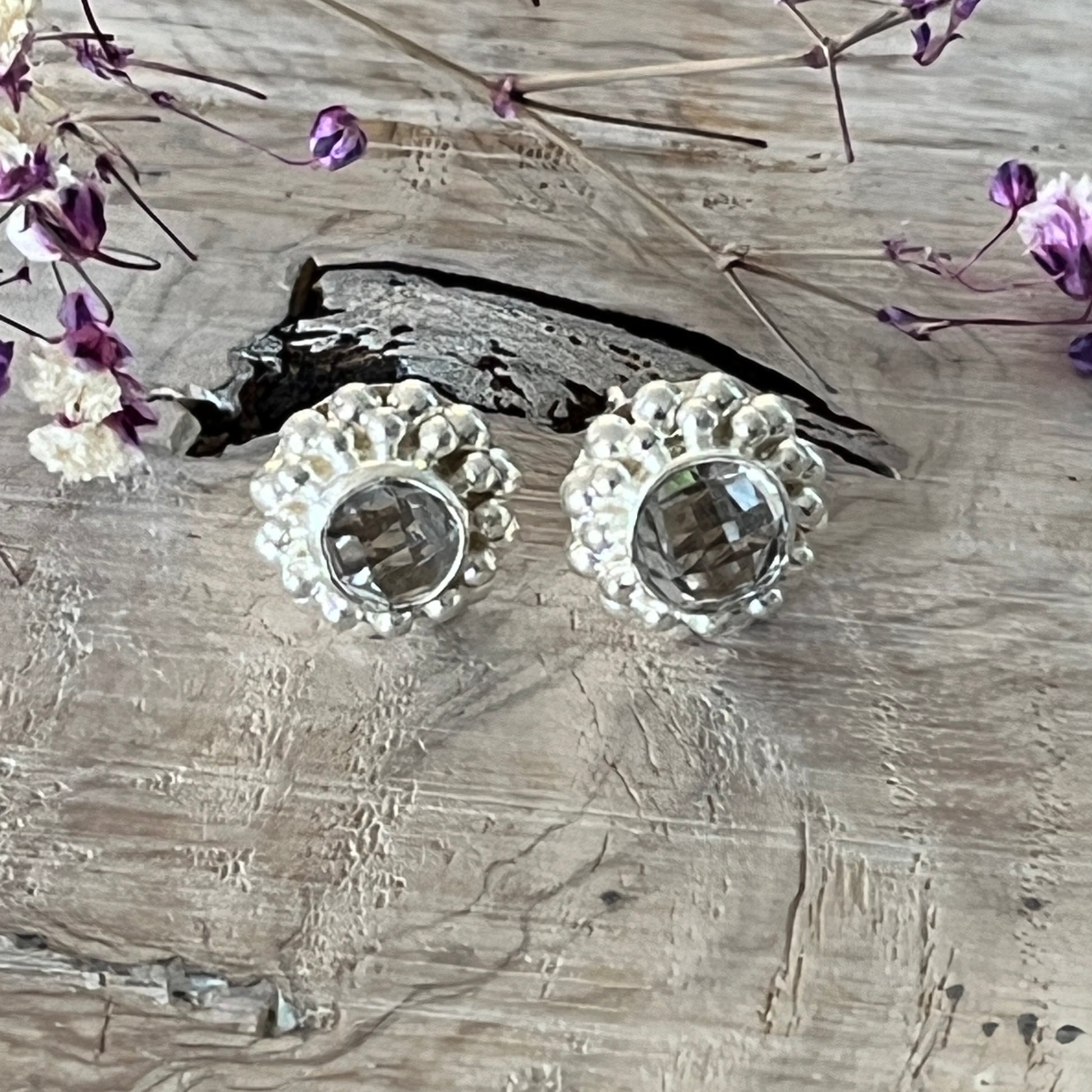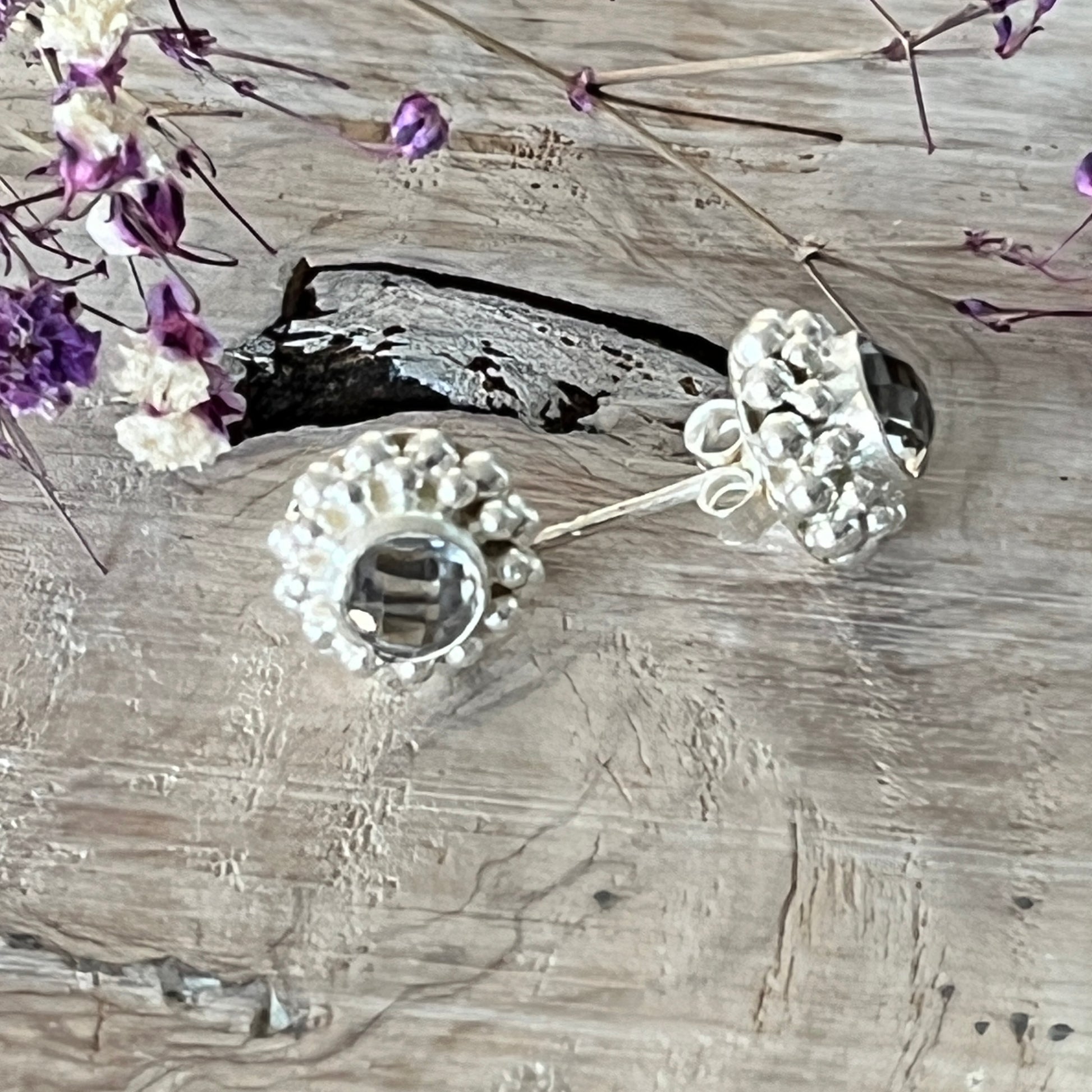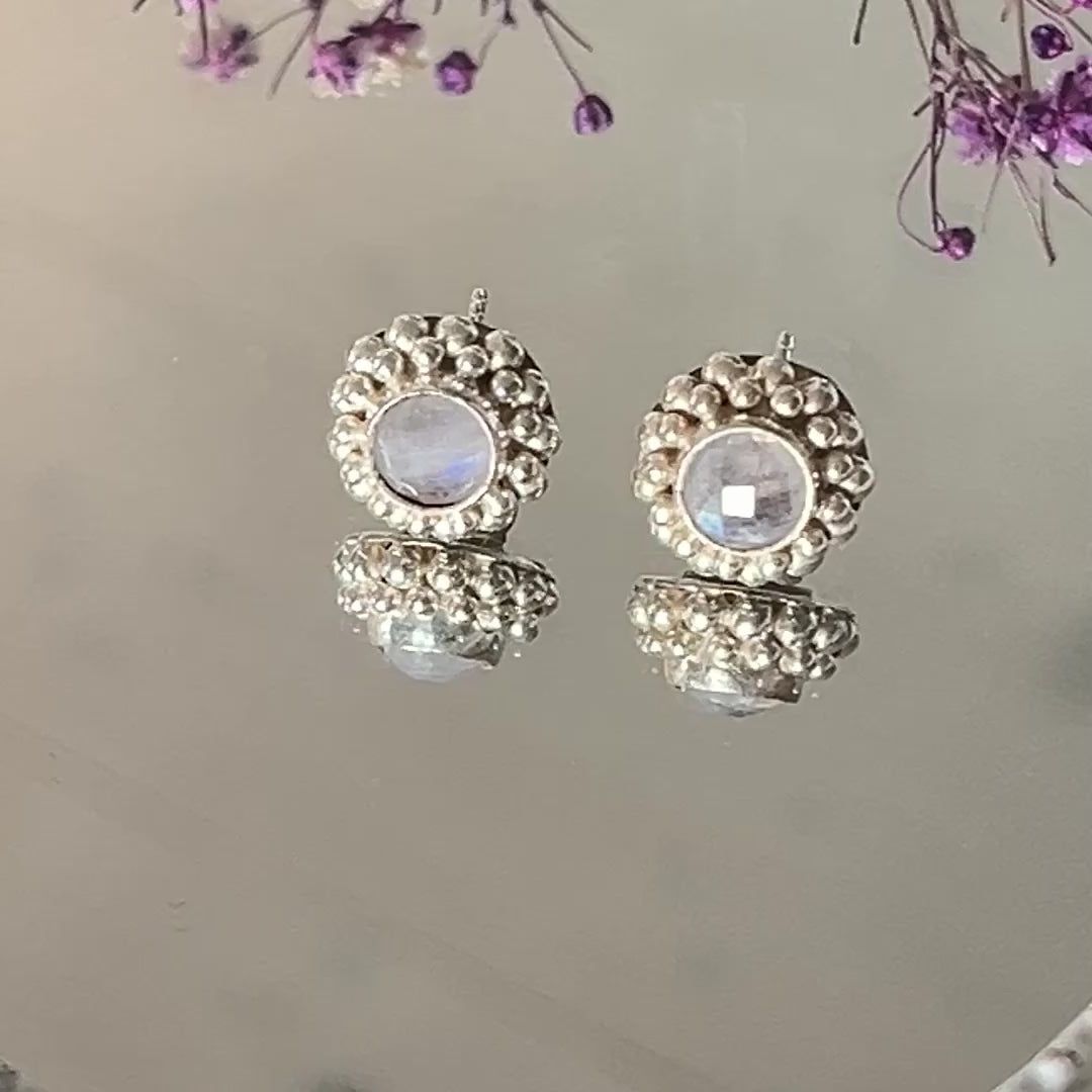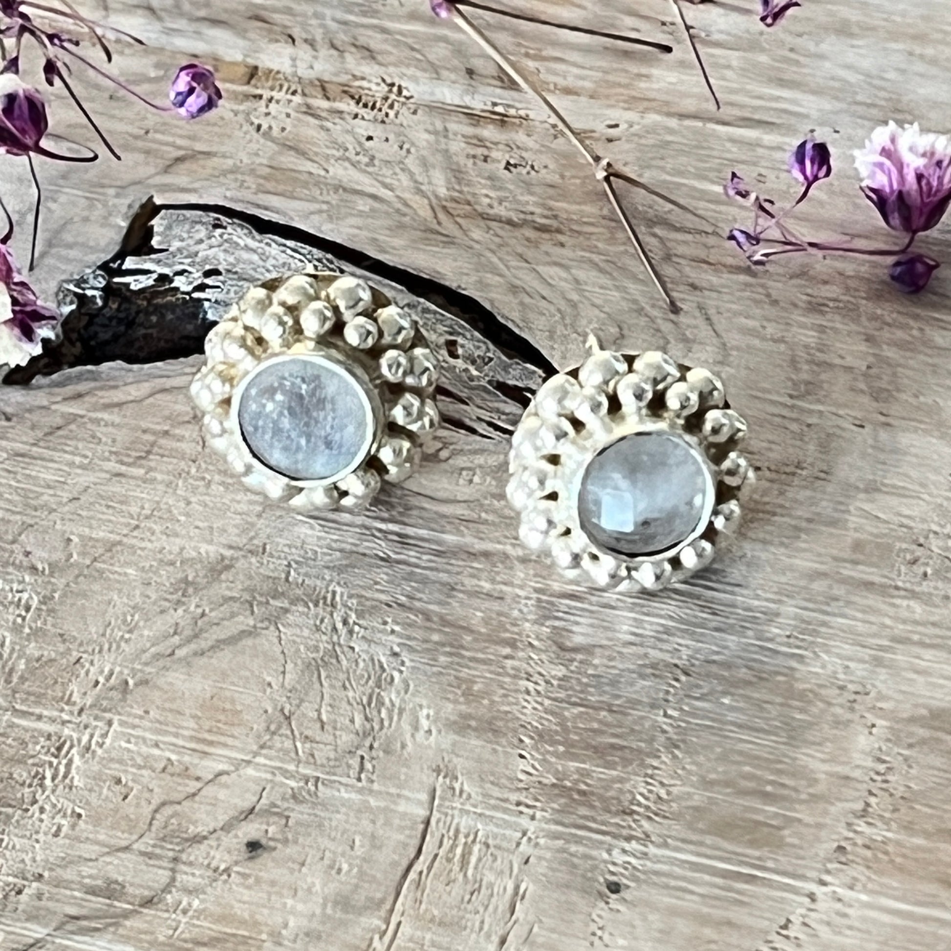 Diese Ohrstecker aus 925 Sterlingsilber lassen sich mit einem 10mm Labradorit oder einem Stein deiner Wahl personalisieren. Einzigartiger Schmuck für jeden Tag mit individueller Note.OH115