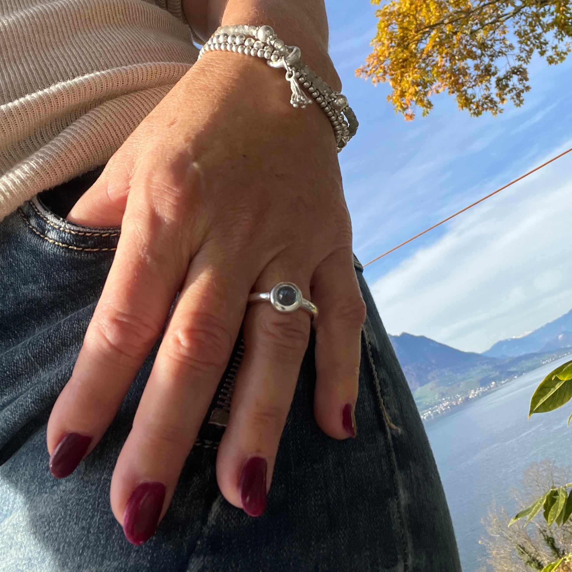 Ring 925 Sterlingsilber mit wunderschönem schlichten Design mit bezauberndem echtem Edelstein, blauer Opal 9mm