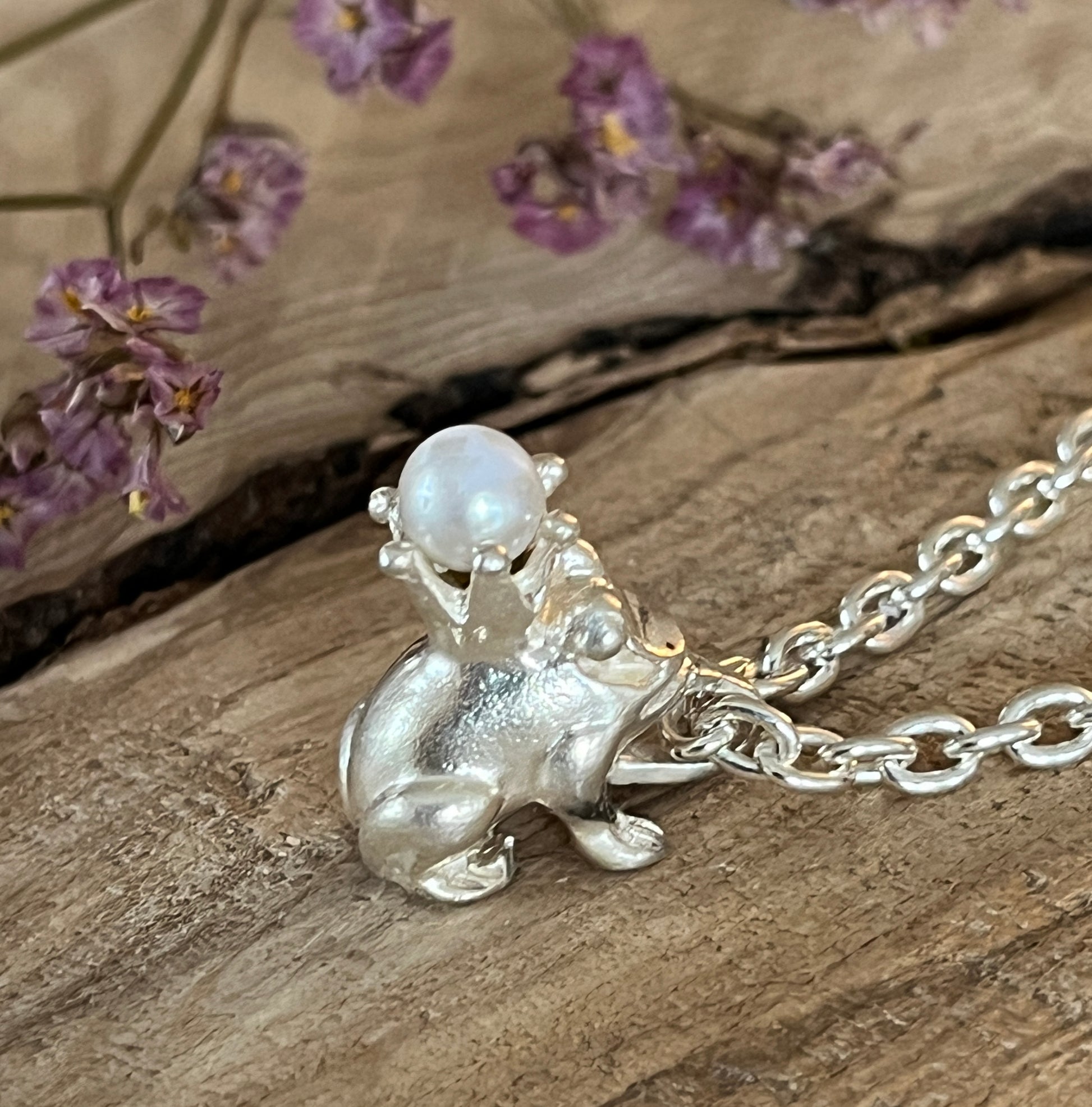 Dieser Frosch-Anhänger aus 925 Sterlingsilber ,massiv gearbeitet, ist ein echter Hingucker! Das Krönchen auf seinem Kopf schimmert durch die echte Süsswasserperle und verleiht dem Anhänger einen besonderen Charme. Ohne Kette. CHA46