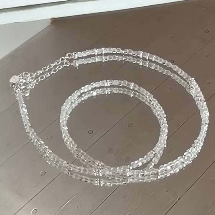 Traumhaft schöne 3mm Bergkristallkette und 925 Sterlingsilberteilchen. Kettenlänge 40cm mit Verlängerung 44cm. Ohne Anhänger