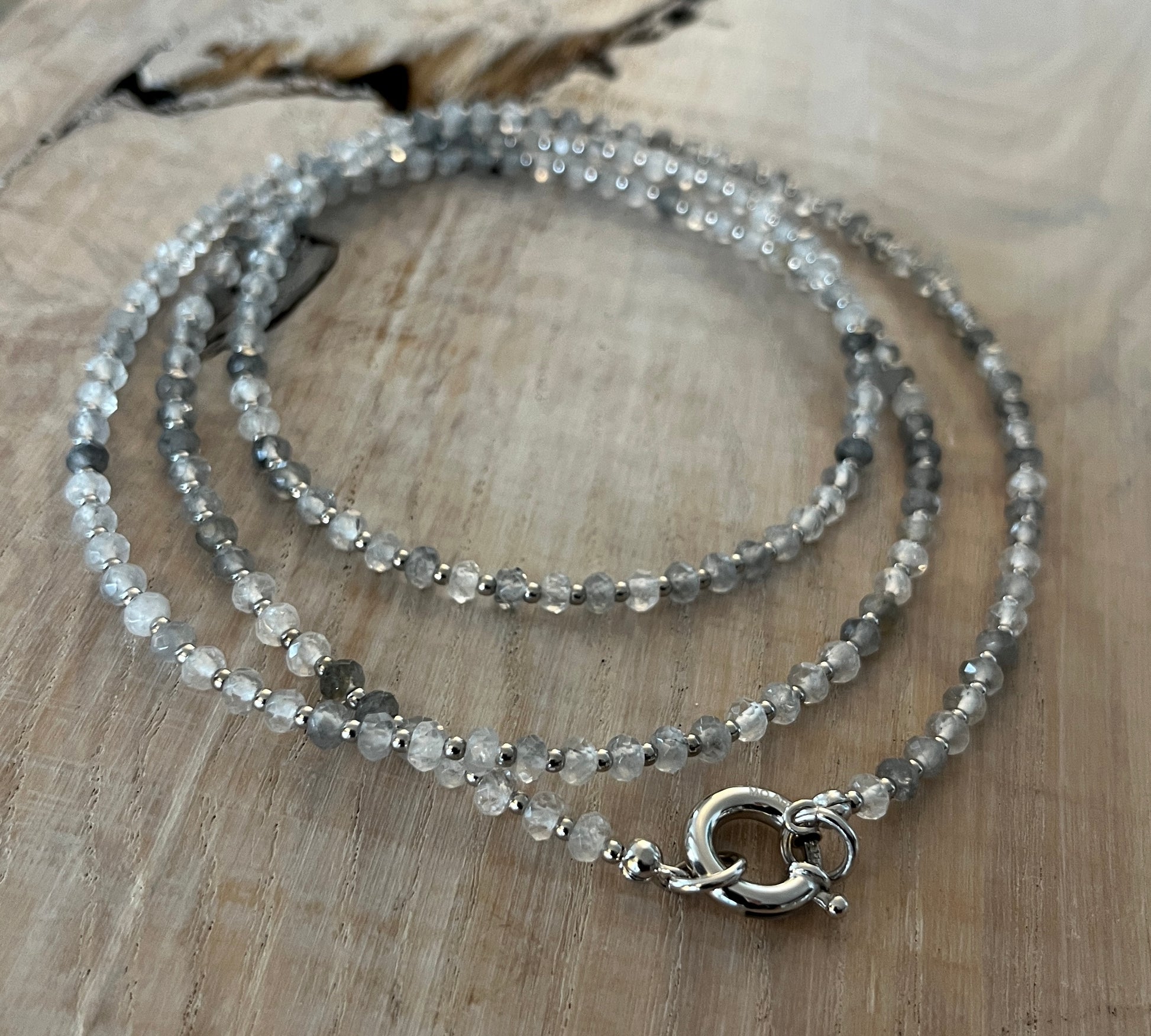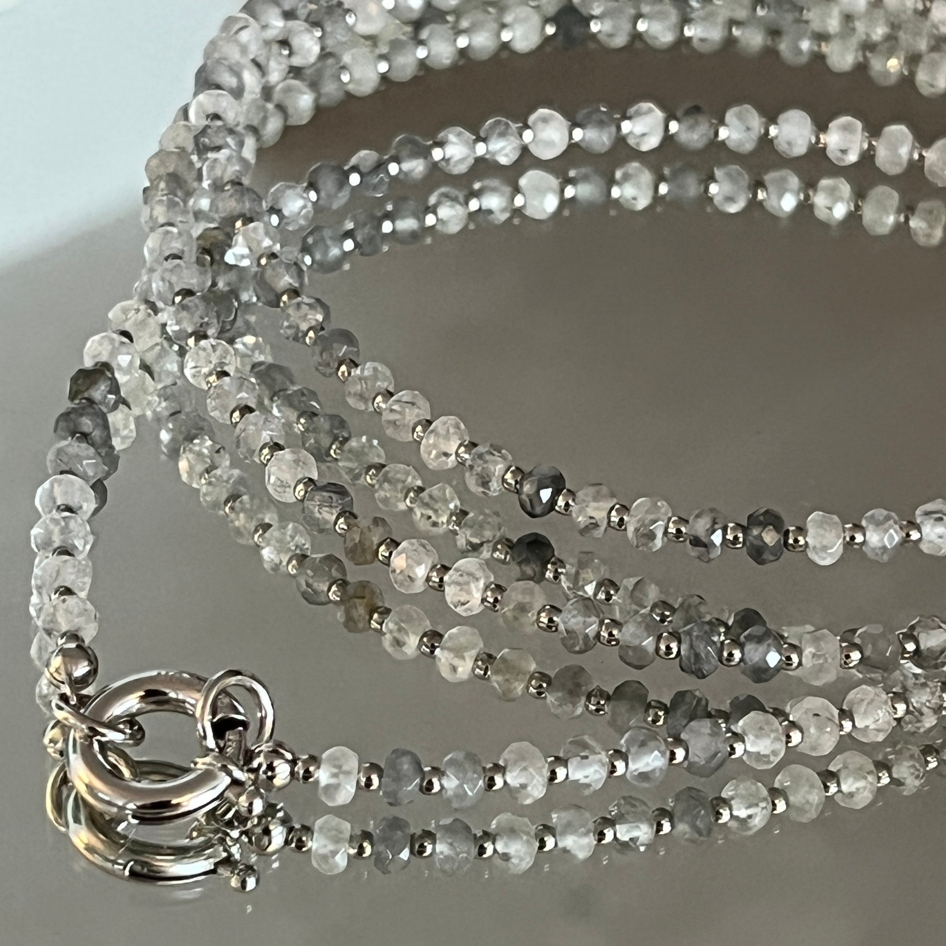 Traumhaft schöne 4mm Silberquarzkette und 925 Sterlingsilberteilchen, der Ringverschluss ist zum öffnen. Kettenlänge 85cm. Ohne Anhänger