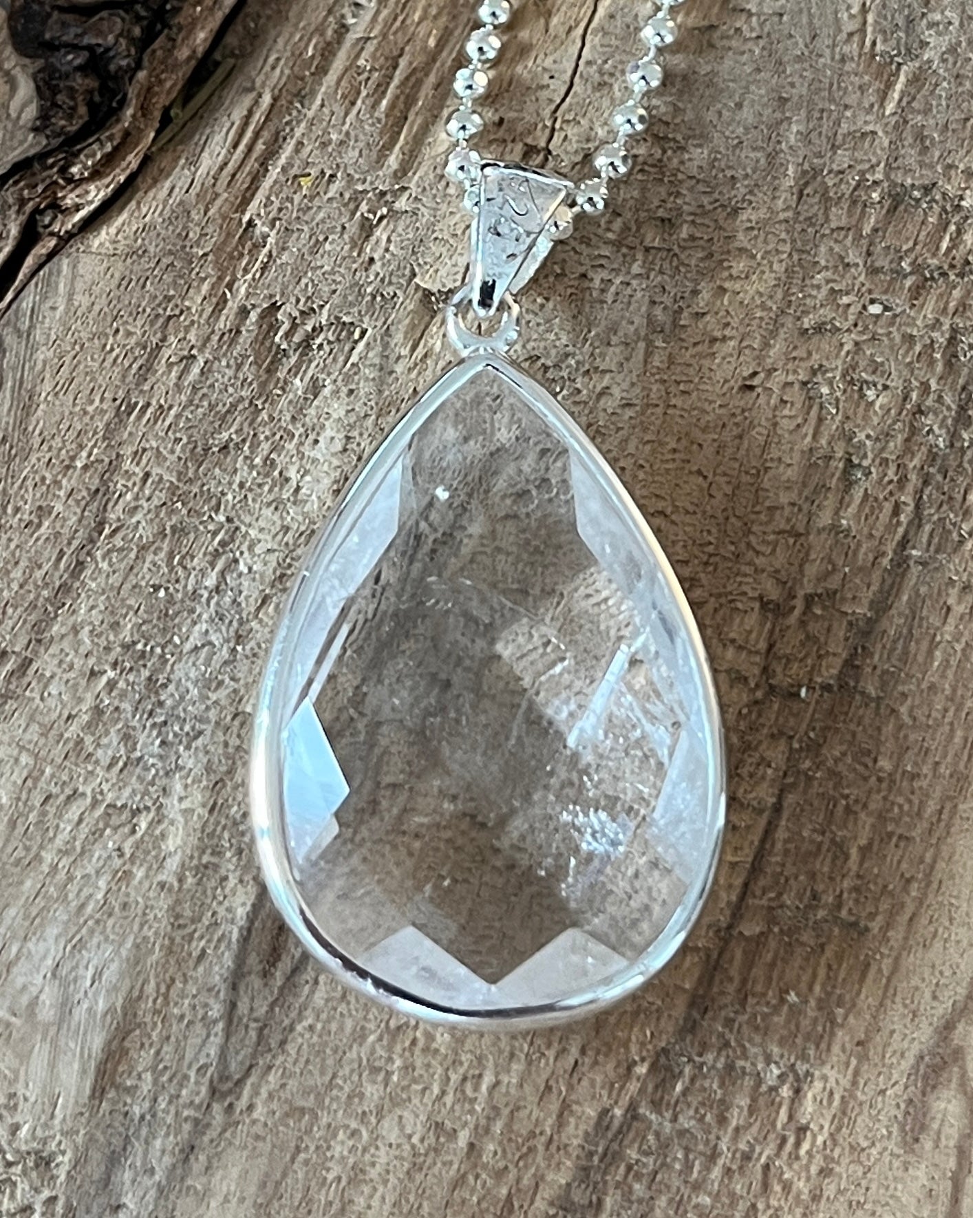 Tropfen-Anhänger 925 Sterlingsilber mit Bergkristall 32x22mm