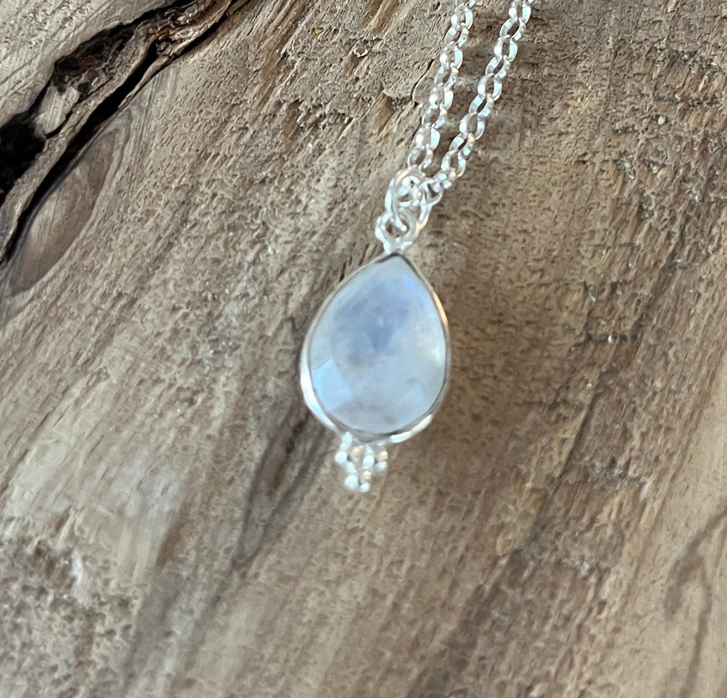 Tropfen-Anhänger 925 Sterlingsilber mit Regenbogen Mondstein 18x11mm AH414