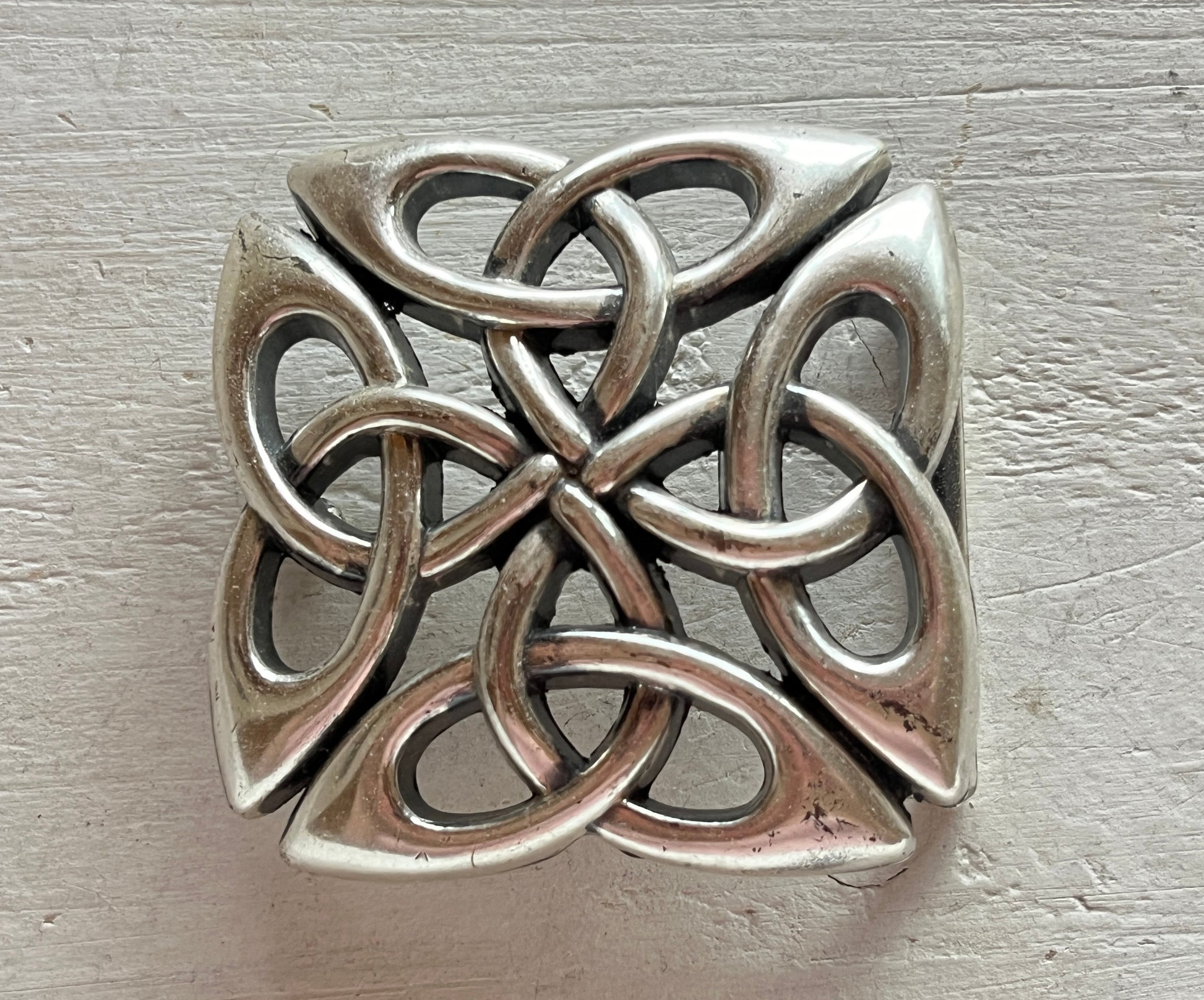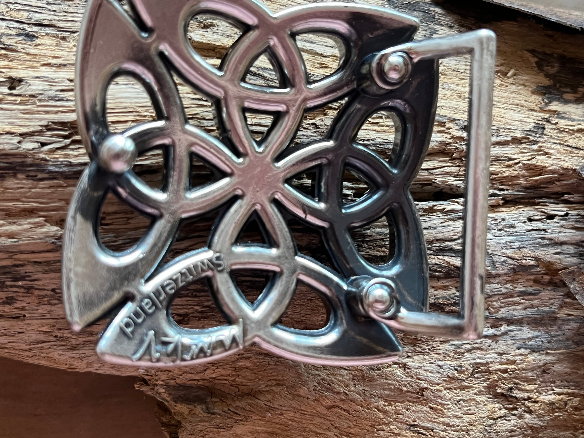 Wechselschnalle Ornament silberfarben leicht geschwärzt 6x6cm, massiv Metall. Passend für Gürtel bis 4cm Breite
