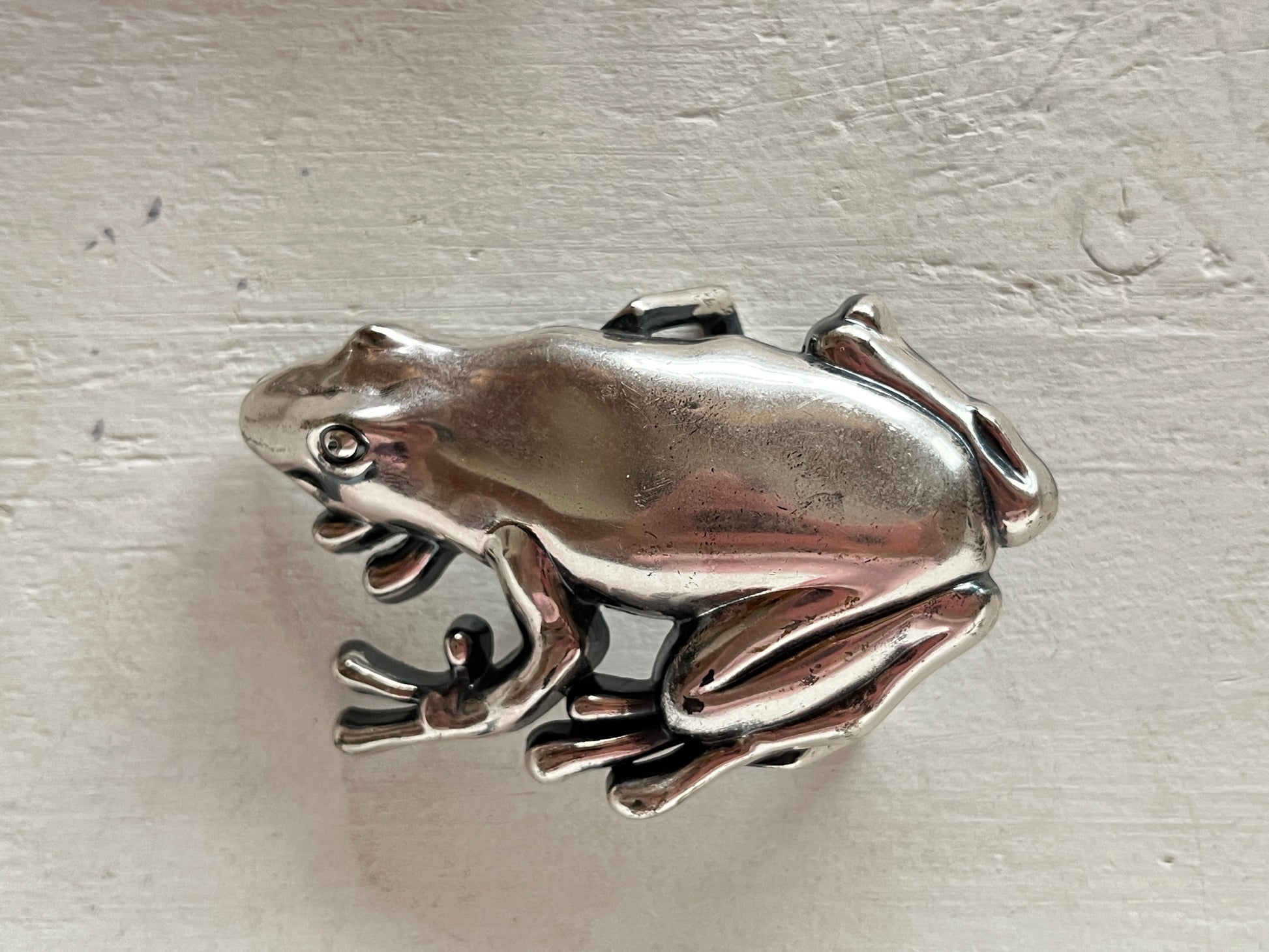 Wechselschnalle süsser Frosch silberfarben 5x7,7cm,massiv Metall. Passend für Gürtel bis 4cm Breite
