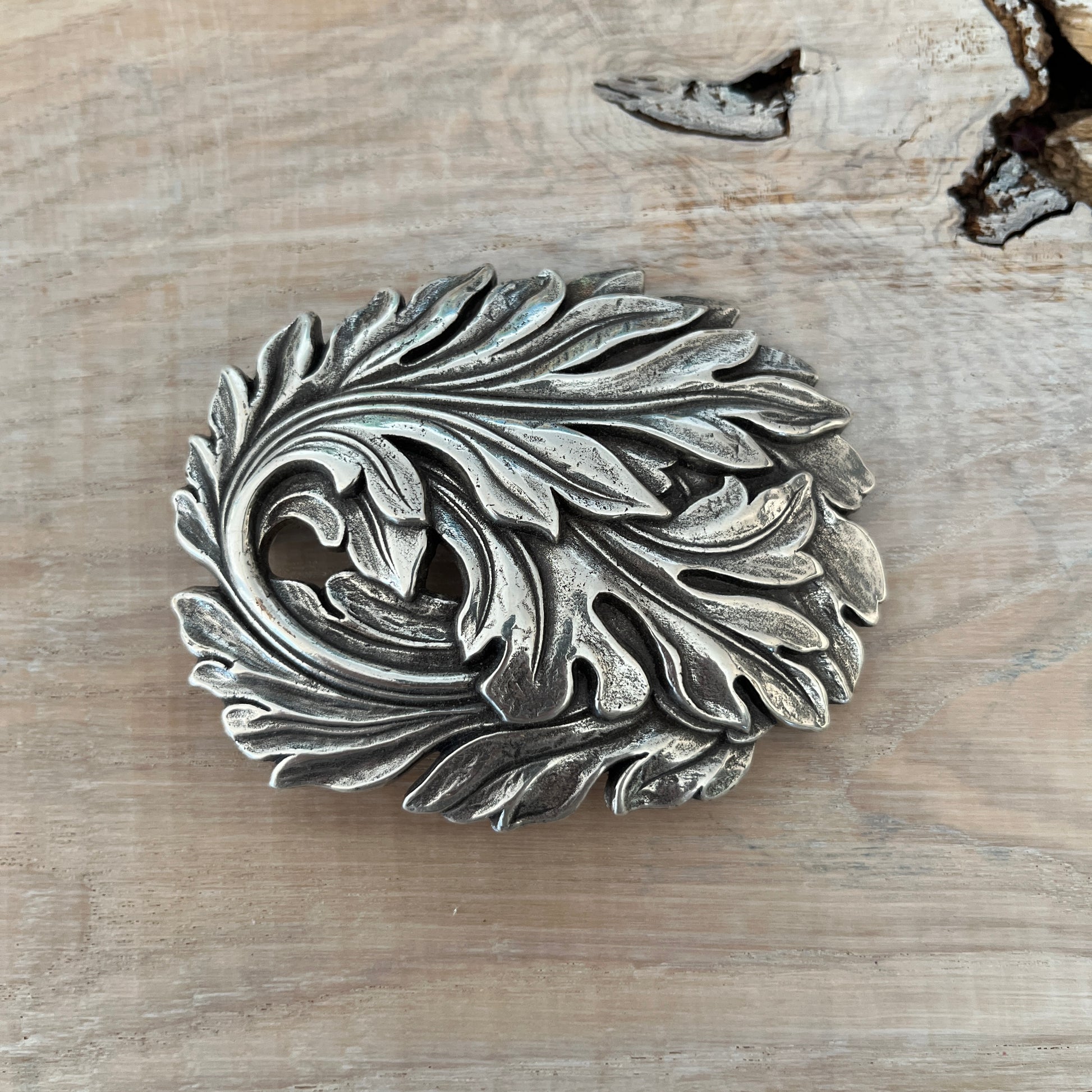 Wechselschnalle verschlungene Blätter silberfarben. Massiv Metall 7x9cm. Passend für Gürtel bis cm Breite