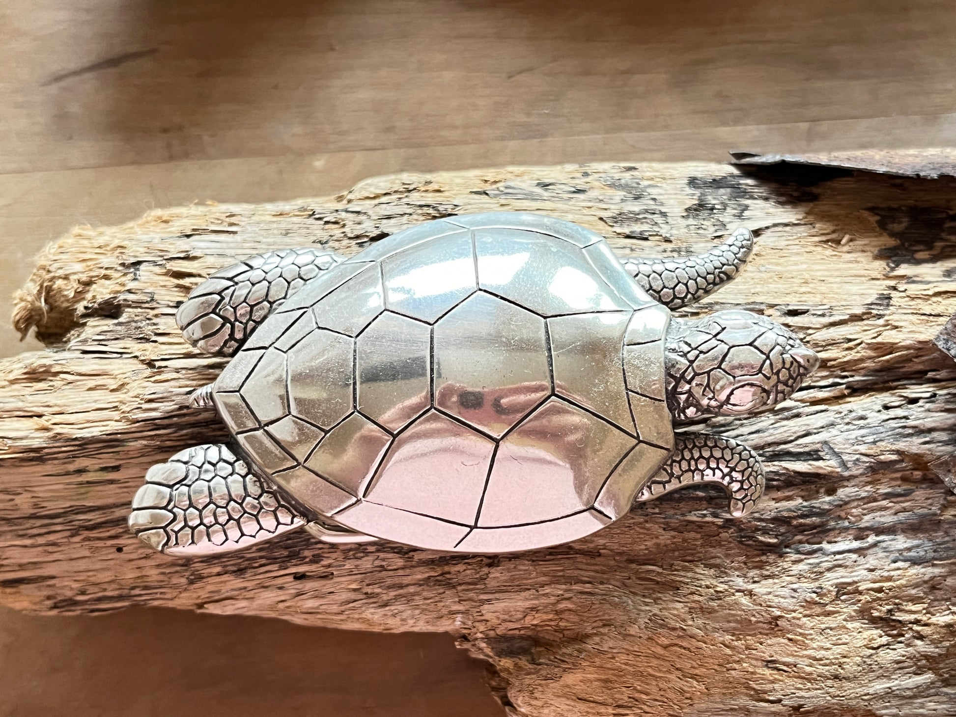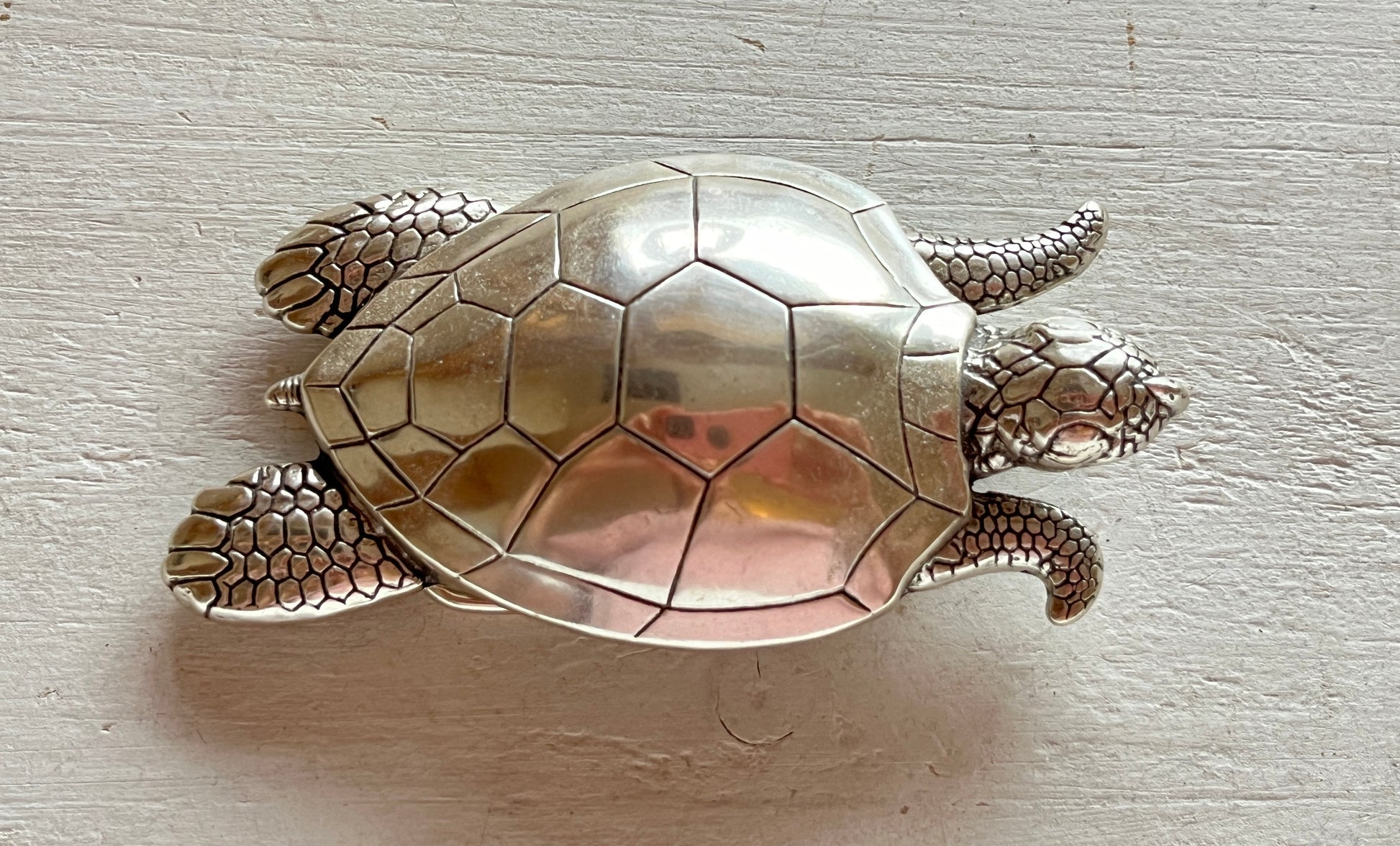 Wechselschnalle hübsche Schiltkröte silberfarben 5,5x10cm. Passend für Gürtel bis 4cm Breite. Massiv Metall