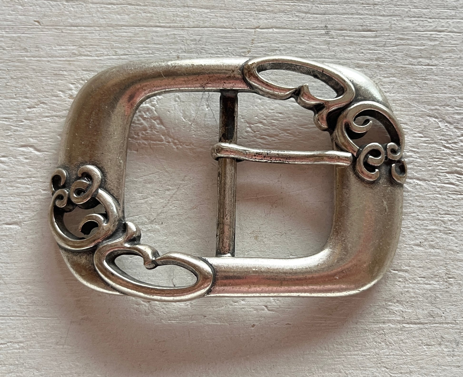 Wechselschnalle hübsch verziert, silberfarben leicht geschwärzt 5,5x8,5cm, massiv Metall. Passend für Gürtel bis 4cm Breite